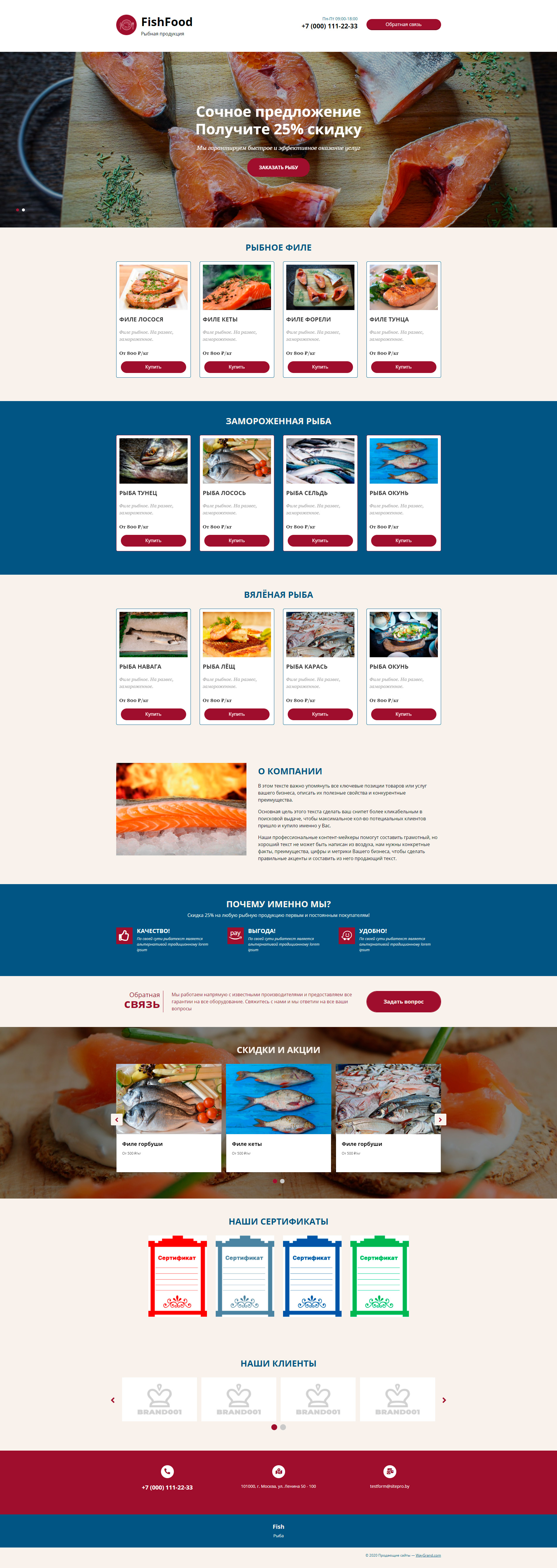 Закажите готовый продающий сайт лендинг #1731203 в Орехово-Зуеве за 1-3 дня «под ключ»: свёрстан, отрисован и готов к рекламе. Тематика шаблона «Рыбная продукция».