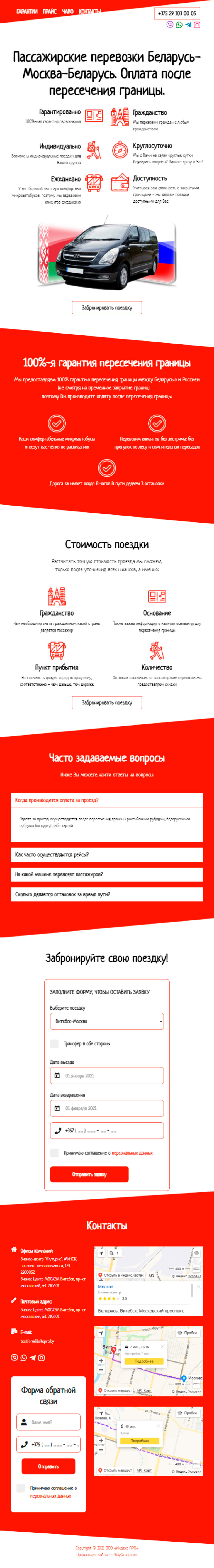 Закажите готовый продающий сайт лендинг #2528201 в Орехово-Зуеве за 1-3 дня «под ключ»: свёрстан, отрисован и готов к рекламе. Тематика шаблона «Пассажирские перевозки Беларусь-Москва-Беларусь».