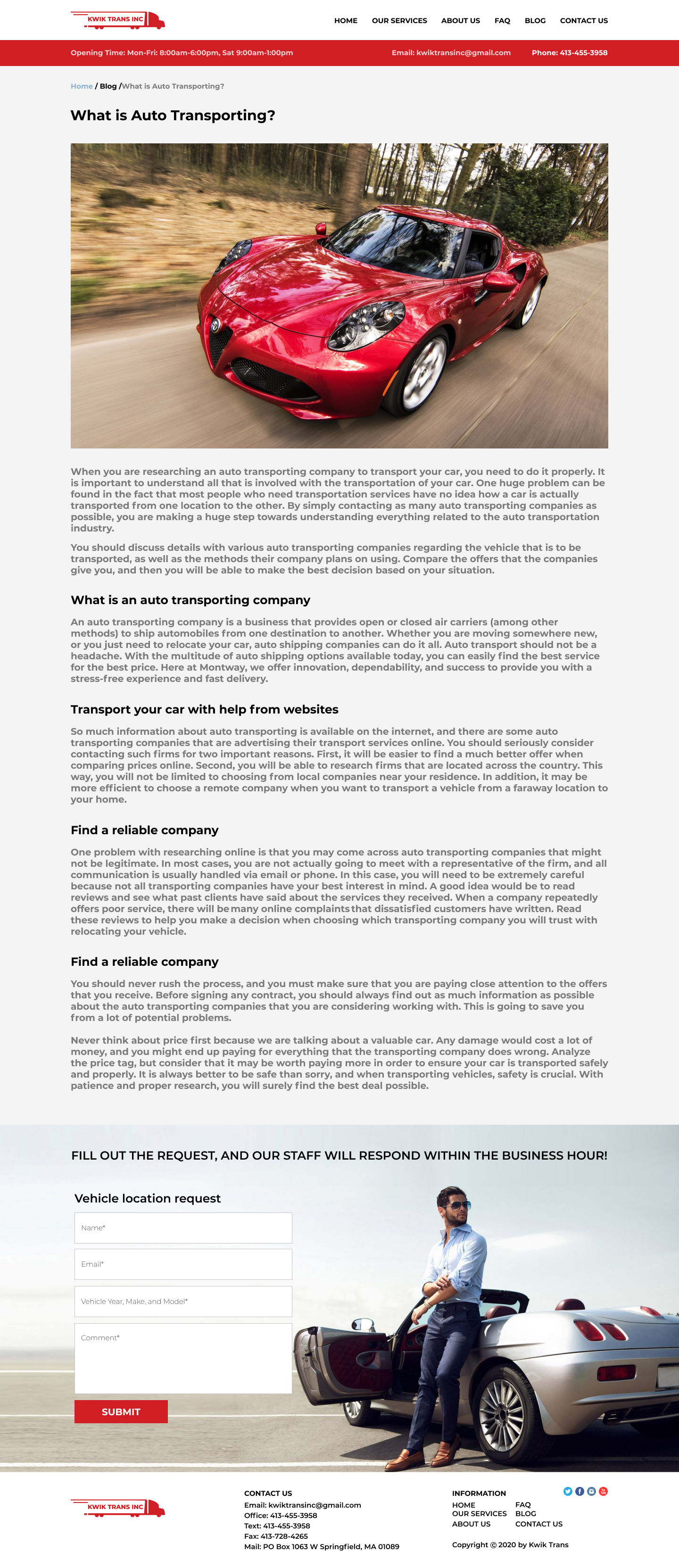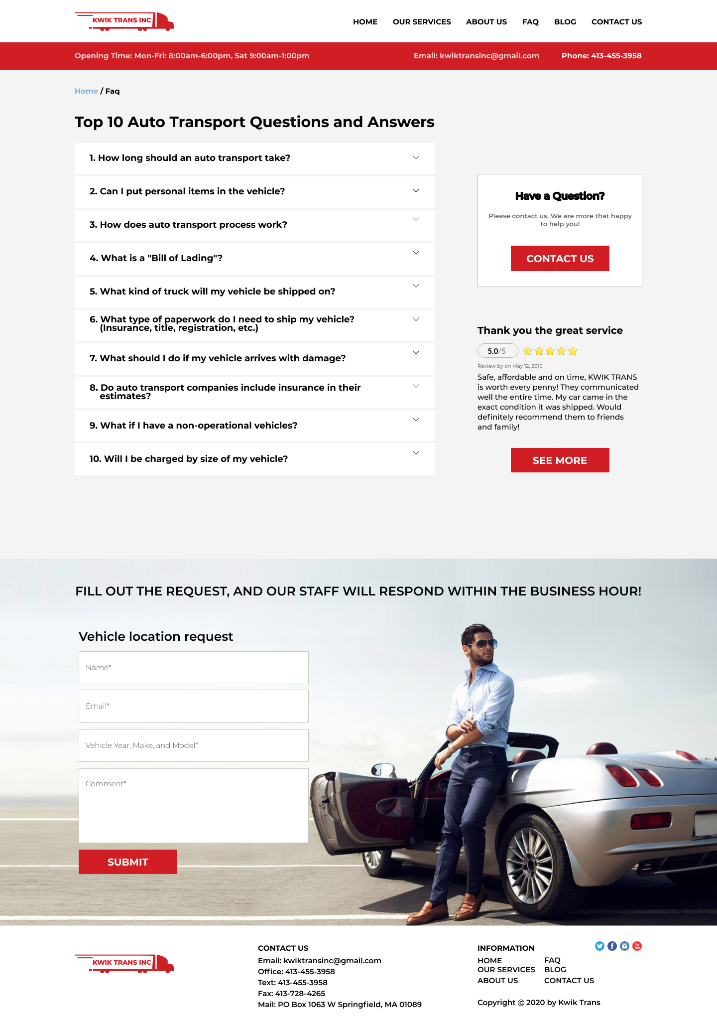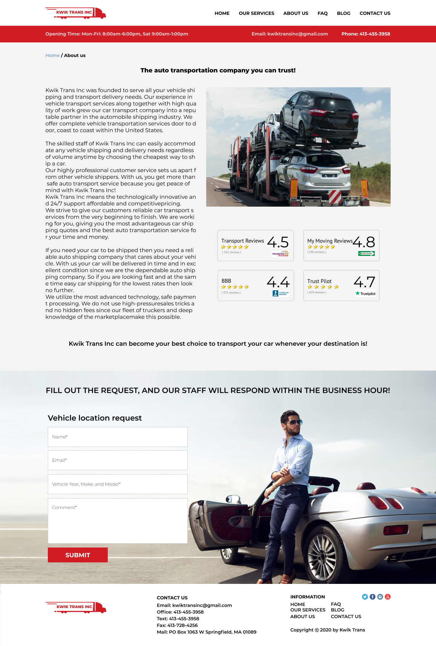 Закажите готовый продающий сайт визитка #223 в Орехово-Зуеве за 5-7 дня «под ключ»: свёрстан, отрисован и готов к рекламе. Тематика шаблона «Safe & Reliable National Auto Transport».